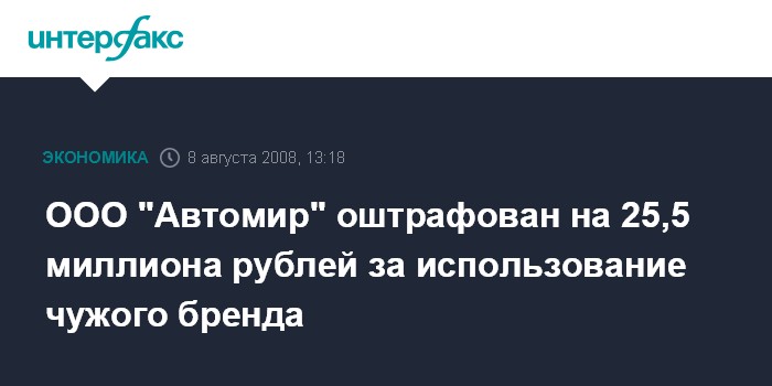 ООО "Автомир" оштрафован на 25,5 миллиона рублей за использование чужого бренда