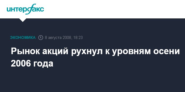 Москва. 8 августа. INTERFAX.RU - Российский рынок акций в пятницу рухнул к уровням осени 2006 г. по основным индексам на негативном внешнем фоне, а также из-за появившихся геополитических рисков, связанных с грузино-осетинским конфликтом, в который может быть втянута Россия, падение индекса РТС за неделю стало максимальным с мая позапрошлого года.