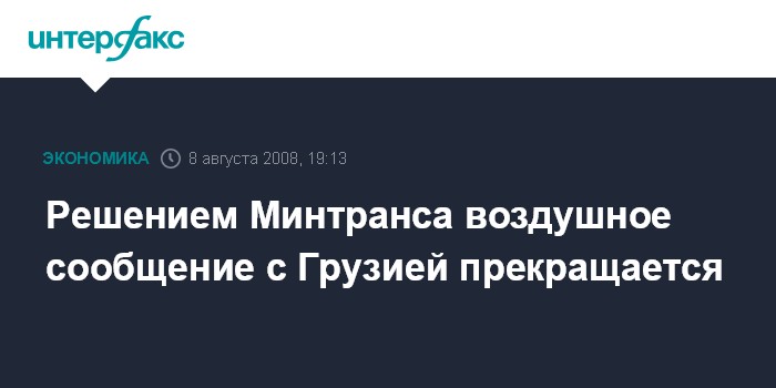 Москва. 8 августа. INTERFAX.RU - Несмотря на поступавшие ранее сообщения о том, что российские авиакомпании пока не прекращают воздушное сообщение с Тбилиси, Минтранс заявил, что с 00:00 9 августа воздушное сообщение с Грузией будет прекращено.