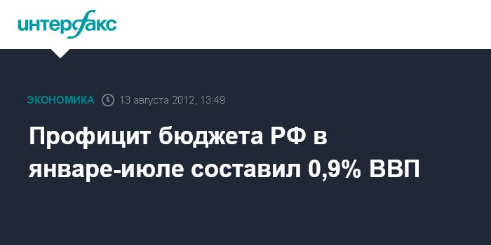 Профицит бюджета РФ в январе-июле составил 0,9% ВВП
