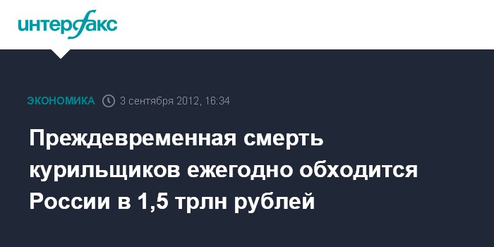 Преждевременная смерть курильщиков ежегодно обходится России в 1,5 трлн рублей