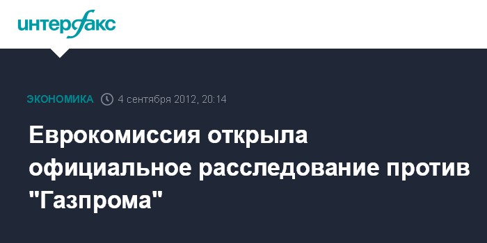 Москва. 4 сентября. INTERFAX.RU - Европейская комиссия открыла формальное расследование вопроса о том, нарушал ли "Газпром" антимонопольные правила ЕС, препятствуя конкуренции на рынках стран Центральной и Восточной Европы, сообщил регулятор в своем заявлении.