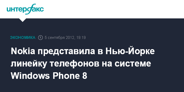 Москва. 5 сентября. INTERFAX.RU - Финский производитель телекоммуникационного оборудования, компания Nokia представила в среду в Нью-Йорке два телефона на обновленной системе Windows Phone 8, разработанной компанией Microsoft.
