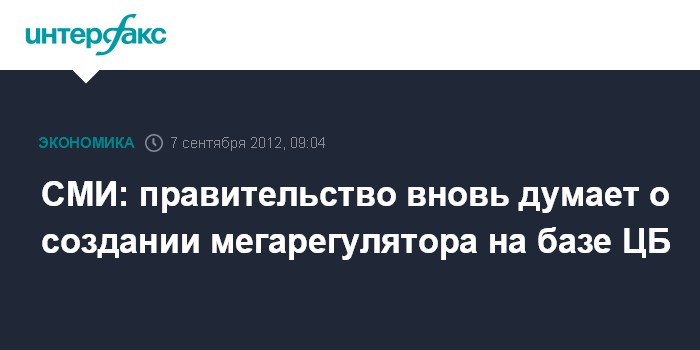 Москва. 7 сентября. INTERFAX.RU - Правительство РФ вновь вернулось к обсуждению идеи создания мегарегулятора финансовых рынков.
