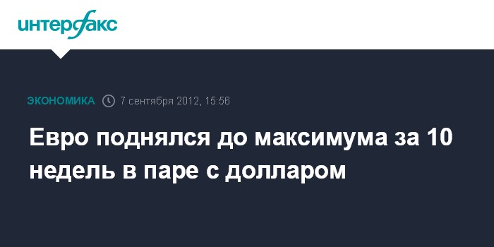 Лондон. 7 сентября. INTERFAX.RU - Евро подорожал в пятницу до максимума за 10 недель относительно доллара США после выхода сильных статданных о германском экспорте и промпроизводстве, подержавших спрос на единую европейскую валюту, сообщает агентство Bloomberg.