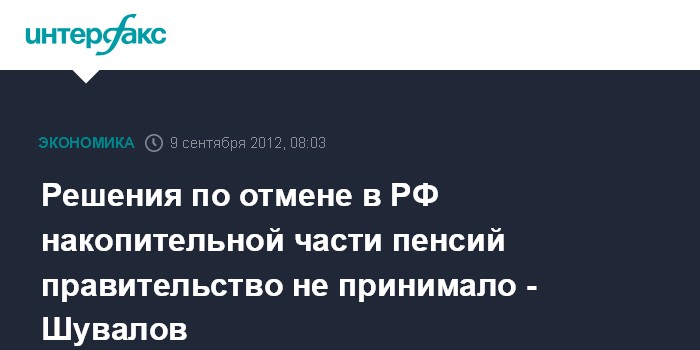 Решения по отмене в РФ накопительной части пенсий правительство не принимало - Шувалов