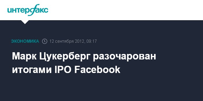 Лондон. 12 сентября. INTERFAX.RU - Основатель и генеральный директор Facebook Марк Цукерберг признал, что разочарован итогами первичного размещения акций компании на бирже (IPO).