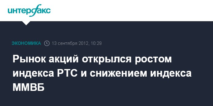Рынок акций открылся ростом индекса РТС и снижением индекса ММВБ