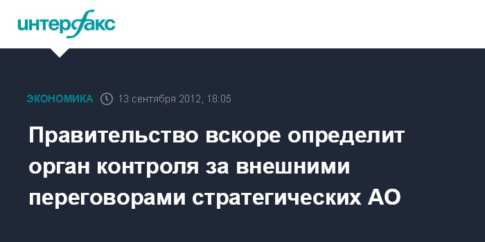 Правительство вскоре определит орган контроля за внешними переговорами стратегических АО