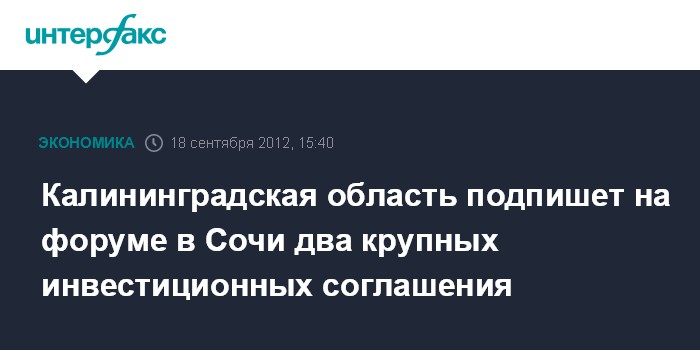 В ходе форума правительство области подпишет два крупных инвестиционных соглашения, которые будут иметь большое значение как для экономики Калининградской области, так и его транспортной инфраструктуры, отметил собеседник агентства.