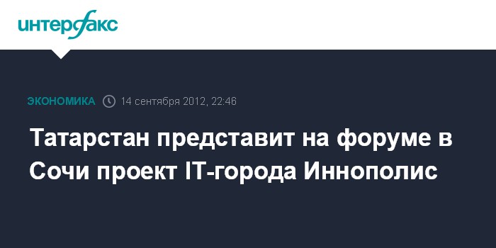 Казань. 14 сентября. INTERFAX.RU - Татарстан представит на ХI Международном инвестиционном форуме "Сочи-2012" проект создания IT-города Иннополис, сообщили агентству "Интерфакс-Поволжье" в министерстве информатизации и связи республики.