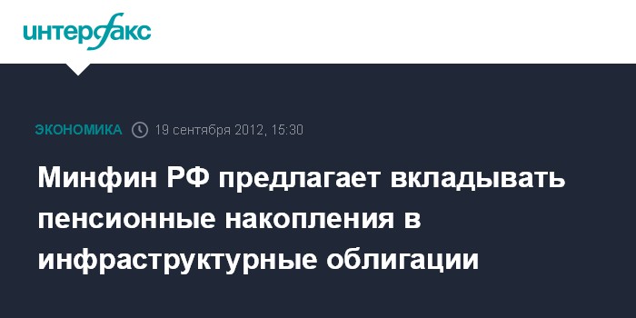 Минфин РФ предлагает вкладывать пенсионные накопления в инфраструктурные облигации