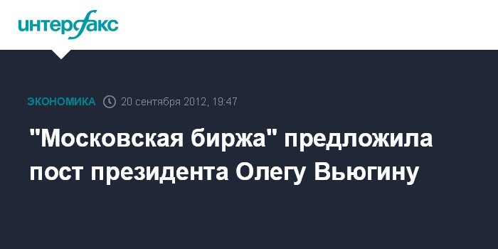 "Московская биржа" предложила пост президента Олегу Вьюгину