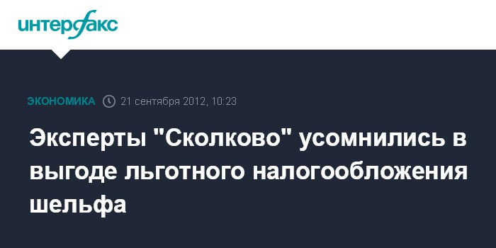 Москва. 21 сентября. INTERFAX.RU - Предложения по льготному налогообложению освоения шельфа РФ (распоряжение правительства РФ N443-р), прежде всего, выгодны ОАО "Роснефть", а проигравшей стороной является федеральный бюджет, считают эксперты Энергетического центра бизнес-школы "Сколково".