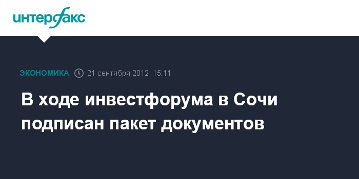 Сочи. 21 сентября. INTERFAX.RU - В ходе ХI Международного инвестиционного форума "Сочи-2012" в присутствии премьер-министра РФ Дмитрия Медведева был подписан пакет документов.