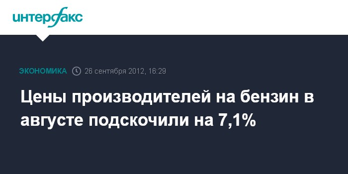 Как сообщалось, розничные потребительские цены на бензин в России в августе 2012 года выросли на 0,5%, после стабильных цен в июле, роста на 0,2% в июне и на 1,4% в мае (с начала года выросли на 2,0%).