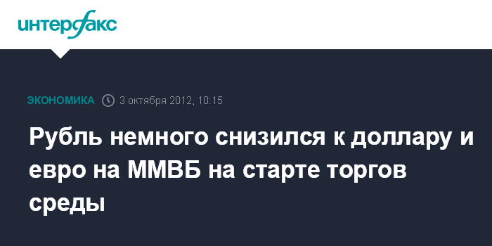 Москва. 3 октября. INTERFAX.RU - Доллар и евро начали торги среды на ММВБ небольшим ростом, рубль снизился по отношению к бивалютной корзине на фоне снижения цен нефти.