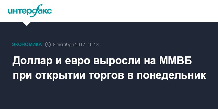 Москва. 8 октября. INTERFAX.U - Доллар и евро выросли на ММВБ в начале торгов понедельника, рубль снизился по отношению к бивалютной корзине на фоне ухудшения настроений на глобальных рынках.