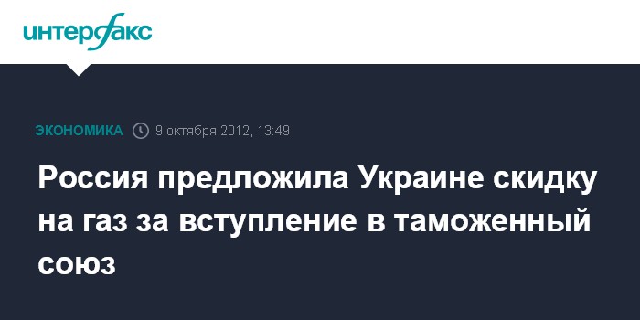Россия предложила Украине скидку на газ за вступление в таможенный союз