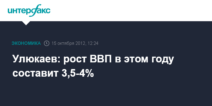 Москва. 15 октября. INTERFAX.RU - Рост ВВП РФ в 2012 г. составит от 3,5% до 4%, примерно на этом же уровне, возможно и меньшем, будет наблюдаться в следующие три года, сообщил первый зампред ЦБ РФ Алексей Улюкаев, выступая на заседании комитета Госдумы.