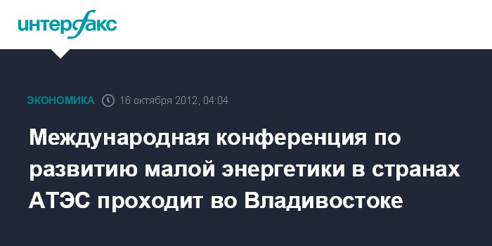 Международная конференция по развитию малой энергетики в странах АТЭС проходит во Владивостоке