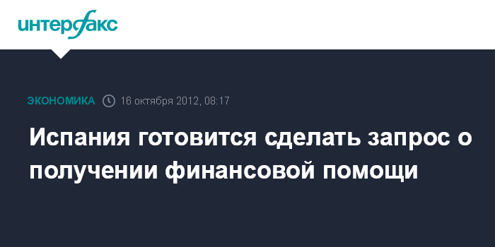 Лондон. 16 октября. INTERFAX.RU - Испания изучает вопрос о получении денег из европейского антикризисного фонда и намерена выбрать для официального запроса подходящий момент, чтобы не навредить другим членам еврозоны.