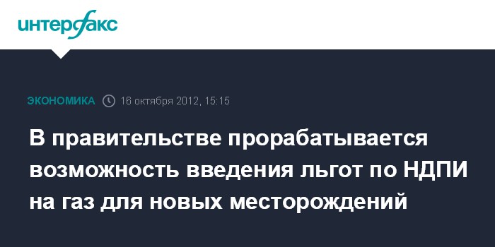 Москва. 16 октября. INTERFAX.RU - Льготы по НДПИ на газ в 2013 году могут быть предоставлены для новых месторождений, считает замминистра финансов РФ Сергей Шаталов.
