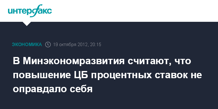 В Минэкономразвития считают, что повышение ЦБ процентных ставок не оправдало себя