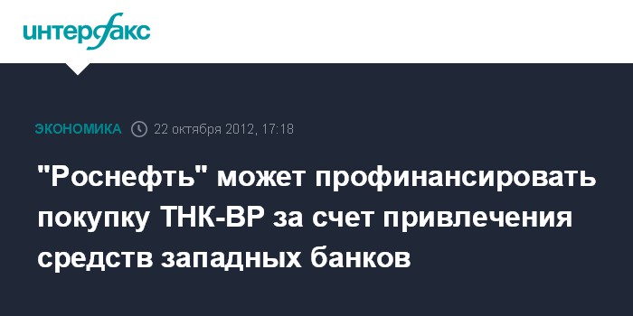 "Роснефть" может профинансировать покупку ТНК-ВР за счет привлечения средств западных банков