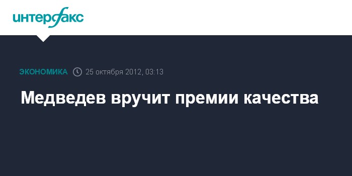 Москва. 25 октября. ИНТЕРФАКС - Премьер РФ Дмитрий Медведев в четверг наградит лауреатов правительственной премии 2011 г. в области качества, сообщили в пресс-службе правительства.