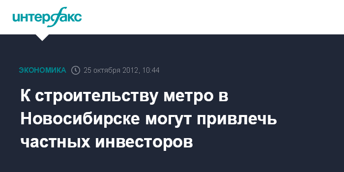 К строительству метро в Новосибирске могут привлечь частных инвесторов