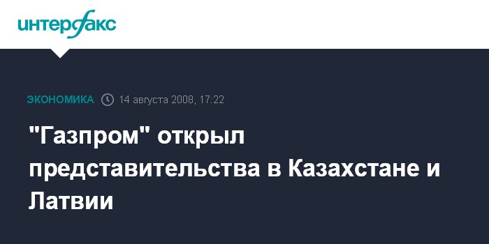 Москва. 14 августа. INTERFAX.RU - "Газпром" открыл представительства в Казахстане и Латвии.