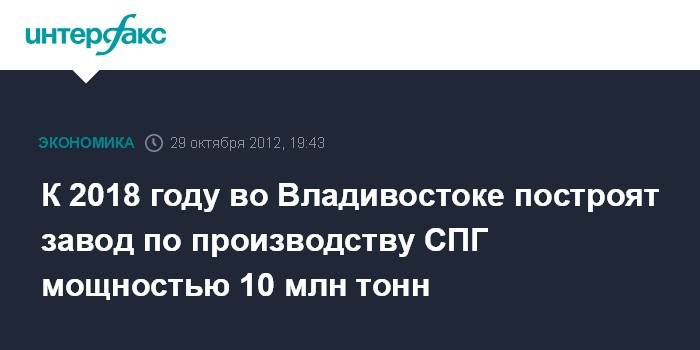 К 2018 году во Владивостоке построят завод по производству СПГ мощностью 10 млн тонн