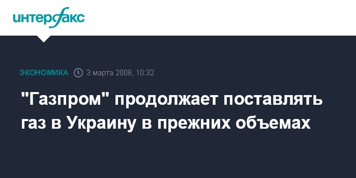 Киев. 3 марта. INTERFAX.RU - ОАО "Газпром" (РФ), собственник единой системы газоснабжения (ЕСГ) России, продолжает поставлять природный газ в газотранспортную систему (ГТС) Украины в прежних объемах, сообщили агентству "Интерфакс-Украина" в пресс-центре НАК "Нафтогаз Украины" в понедельник утром.