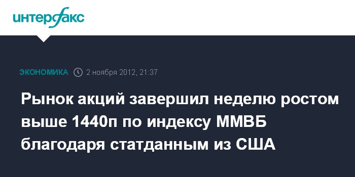 Москва. 2 ноября. INTERFAX.RU - Российский рынок акций завершил неделю ростом выше 1440 пунктов по индексу ММВБ благодаря сильным статданным с рынка труда США, оказавших поддержку всем мировым площадкам.