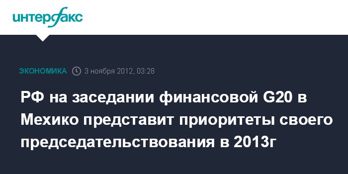 РФ на заседании финансовой G20 в Мехико представит приоритеты своего председательствования в 2013г