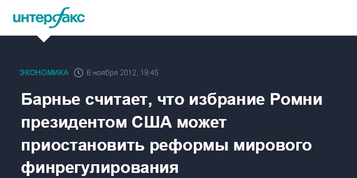 Барнье считает, что избрание Ромни президентом США может приостановить реформы мирового финрегулирования