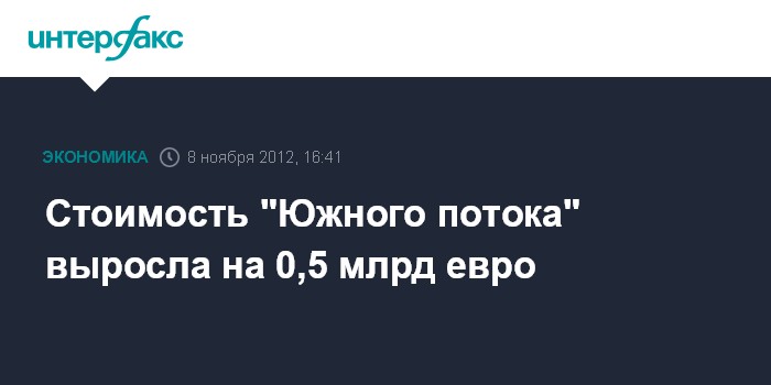 Стоимость "Южного потока" выросла на 0,5 млрд евро