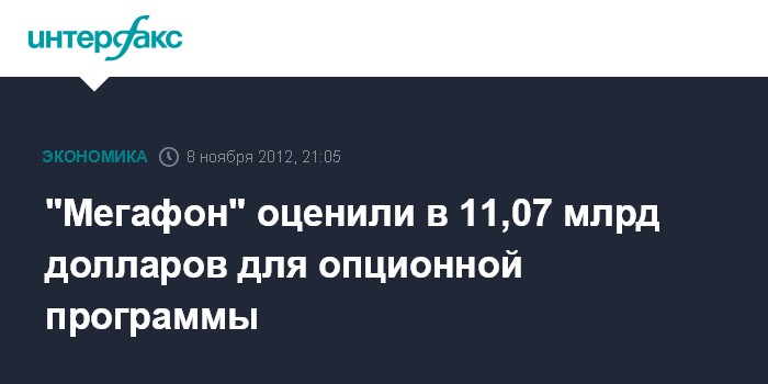 "Мегафон" оценили в 11,07 млрд долларов для опционной программы