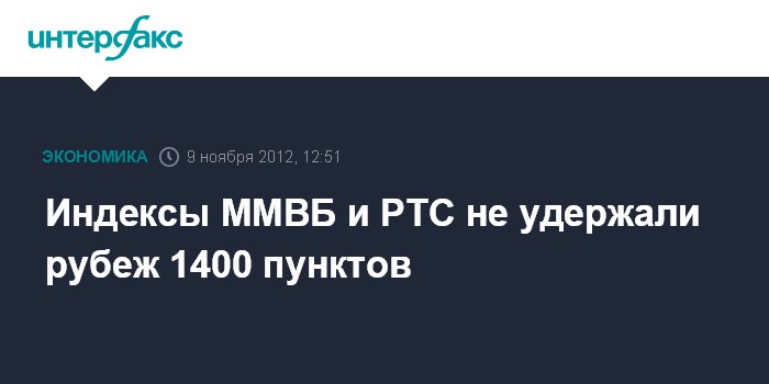 Москва. 9 ноября. INTERFAX.RU - Индексы ММВБ и РТС днем в пятницу скатились ниже психологически важного рубежа 1400 пунктов на фоне сохраняющихся продаж западных инвесторов, утративших интерес к рискованным активам.