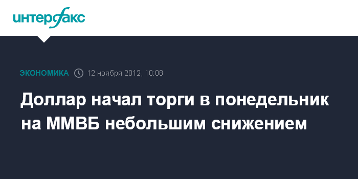 Москва. 12 ноября. INTERFAX.RU - Доллар немного снизился на ММВБ на старте торгов понедельника, рубль чуть вырос по отношению к бивалютной корзине, отыгрывая повышение цен нефти.