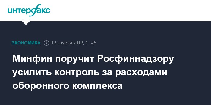Москва. 12 ноября. INTERFAX.RU - Минфин РФ намерен дать поручение контрольному органу - Росфиннадзору - уделять больше внимания расходам в сфере оборонного комплекса, сообщил министр финансов РФ Антон Силуанов на встрече с представителями фракции КПРФ.