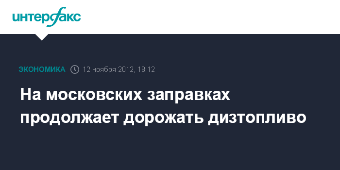 Москва. 12 ноября. INTERFAX.RU - Дизельное топливо продолжает дорожать на московских заправках, цены на бензин стабильны, свидетельствуют данные Московской топливной ассоциации (МТА).