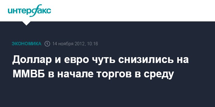 Москва. 14 ноября. INTERFAX.RU - Доллар и евро немного снизились на ММВБ в начале торгов в среду, рубль чуть вырос по отношению к бивалютной корзине на фоне улучшения динамики рынков капитала.