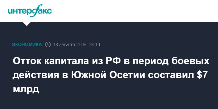 Отток капитала из РФ в период боевых действия в Южной Осетии составил $7 млрд