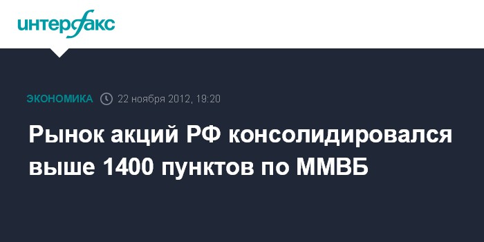 Рынок акций РФ консолидировался выше 1400 пунктов по ММВБ