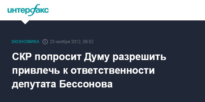 СКР попросит Думу разрешить привлечь к ответственности депутата Бессонова