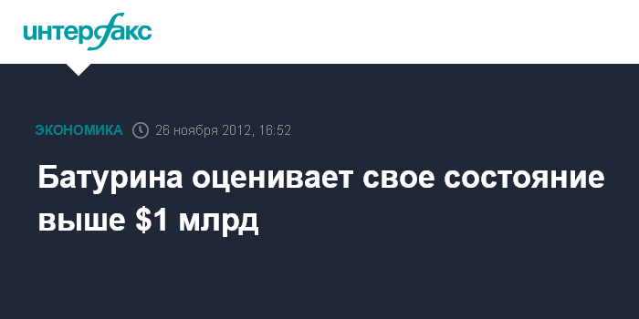 Батурина оценивает свое состояние выше $1 млрд