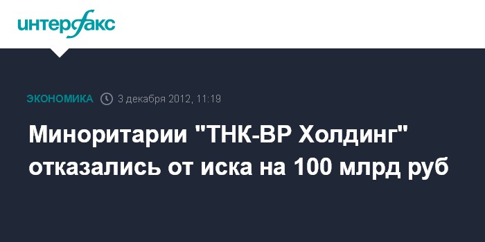 Миноритарии "ТНК-BP Холдинг" отказались от иска на 100 млрд руб