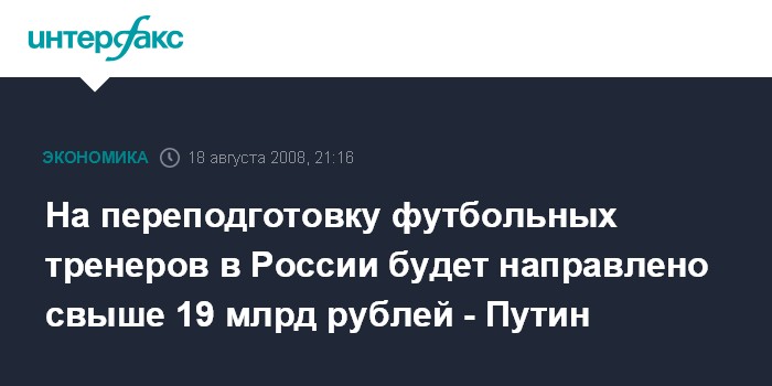 На переподготовку футбольных тренеров в России будет направлено свыше 19 млрд рублей - Путин